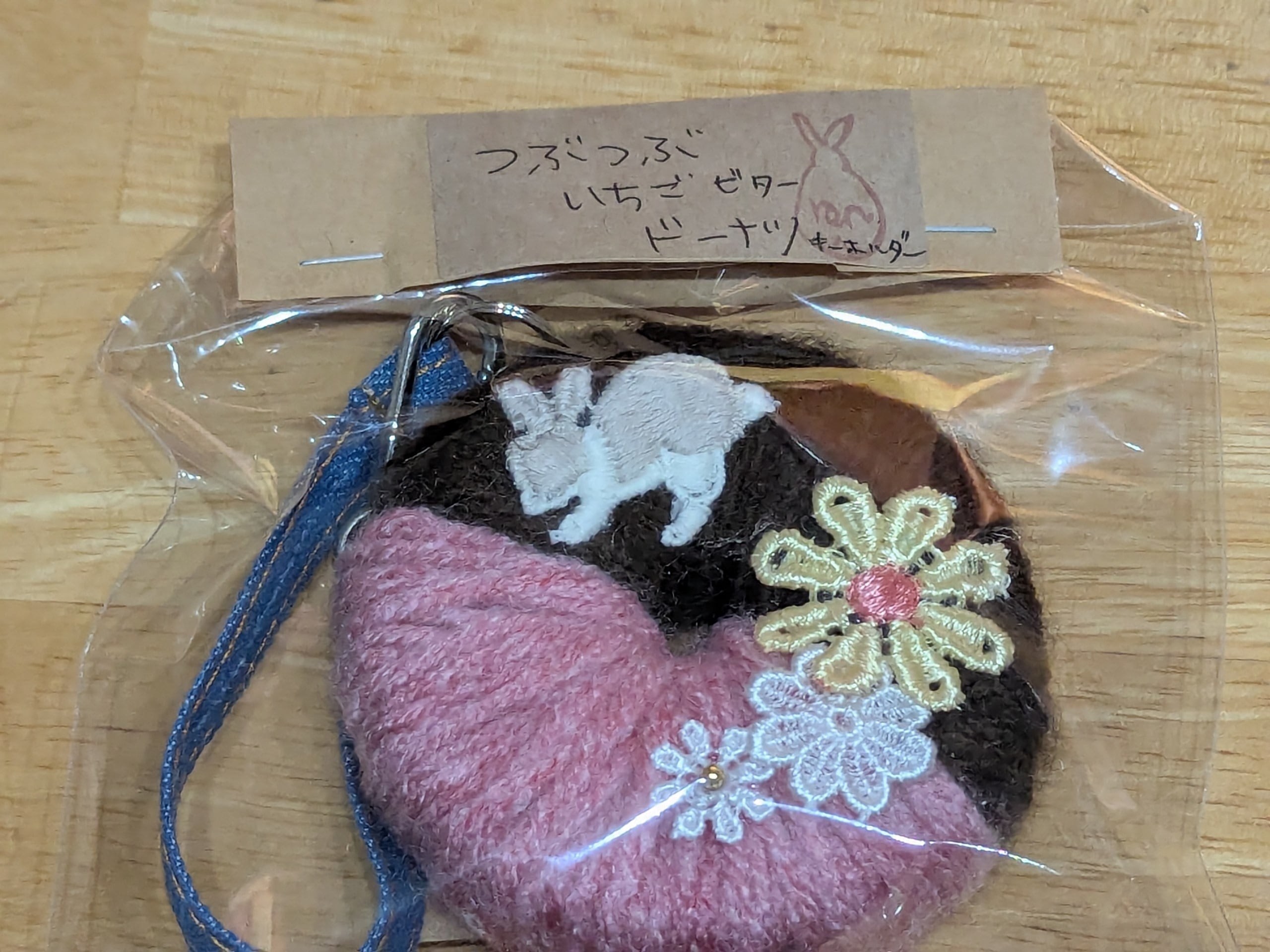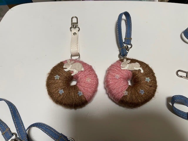 ドーナツにうさぎのモチーフがついた可愛いキーホルダーです。